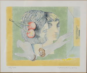 Komposition med ansikten. Signerad och numrerad 138/290. 21x26 cm.