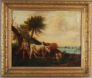 Avslutade auktioner liknande OIDENTIFIERAD KONSTNÄR. Herde med kor, olja på duk, England 1800-tal.