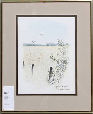 Konstnär född: 1945 Landskap med rävar Signerad med blyerts: Gunnar Gebbe Björkman Daterad: 1987 Numrerad: PT Totalmått: 45 x 34 cm Löst blad Konditionsrapport: Inga Läs mer...