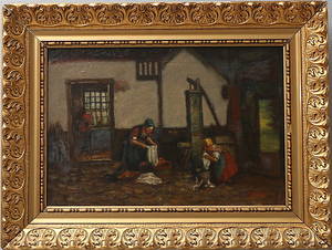 Oidentifierad konstnär. Signerad. Olja på duk, interiör. Olja på duk, 28x42cm, yttermått inklusive ram: 41x56cm. Läs mer...