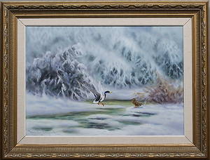 Avslutade auktioner liknande HENNING HOUGAARD. Gräsänder i vinterlandskap. Olja på duk. Signerad.