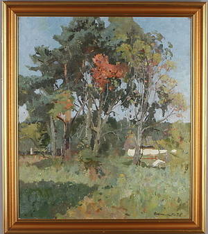 Bruno Karlsson, Landskap Olja på duk signerad, ca 62x62 cm Obetydligt ytslitage. Läs mer...