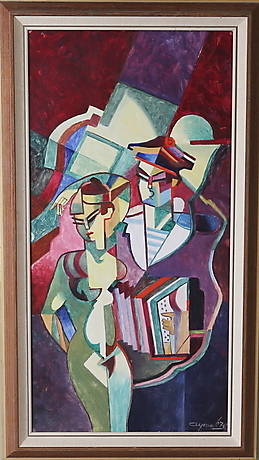 JAN SIGFRID ALFONS CARLSSON (1900-1985): Figurkomposition, signerad och daterad -70, olja på pannå, ca 79x54 cm. 849324. Läs mer...