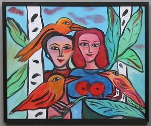 Ulrica Hydman-Vallien, "Kvinna med fåglar". Signerad Ulrica Hydman-Vallien. Akvarell, bladstorlek 40,5 x 31 cm. Ej examinerad ur ram. Läs mer...