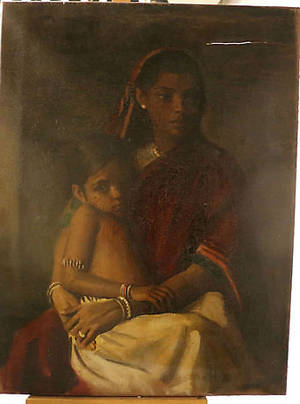 Avslutade auktioner liknande OIDENTIFIERAD KONSTNÄR. Olja på duk, Kvinna med barn, signerad.
