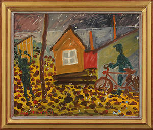 Avslutade auktioner liknande SVEN X:ET ERIXSON (1899-1970). Man med cykel. Olja på pannå.