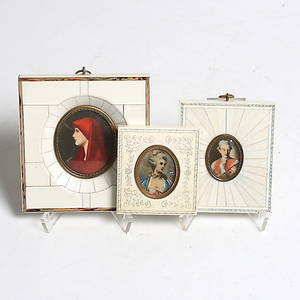 Avslutade auktioner liknande MINIATYRMÅLNINGAR, 3 st, porträtt av Fabiola, Bellman samt Hovdam.