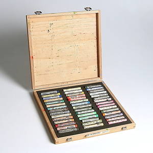 "ARTISTMATERIAL / TORRPASTELLKRITOR i TRÄLÅDA, 45 st, Rembrandt, 19/2000-tal."