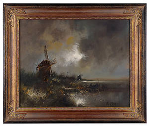 Avslutade auktioner liknande SIGNIERT B. VAN VLIET. Niederländische Küstenlandschaft mit Windmühlen.