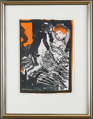Avslutade auktioner liknande PETER DAHL. Offsetfärglitografi, signerad, numrerad 63/150. Daterad 1984 i trycket.
