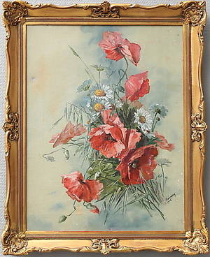 Oidentifierad konstnär. Stilleben. Signerad S H Claeson Feuk. Olja på duk, 49x77 cm, yttermått inklusive ram: 68x95 cm. Läs mer...