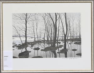 Reinhold Ljunggren (1920-2006), Sverige. Signerad, numrerad 151/360, vårvinter. Färglitografi, bildmått: 48x30 cm, yttermått inklusive ram: 62x42 cm. Reinhold Ljunggren, född 1920 i Vittaryd, död 2006, Läs mer...