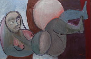 SAM RINNE. Modell, olja på duk, signerad Sam R och daterad -98.