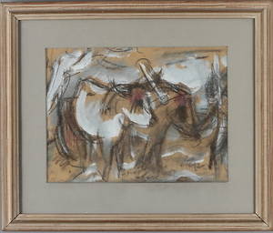 "KARL SOHN RETHEL. Kompostion med boskap, blanteknik, monogramsignerad."