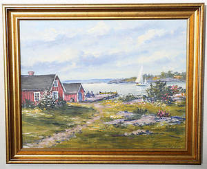 Avslutade auktioner liknande EGON LENNART KARLSSON. Olja på pannå, "Sommardag i skärgården", signerad.