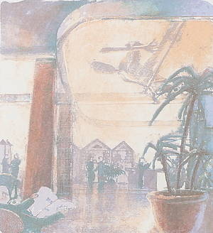 MATS ARONSSON. "Entré". Färglitografi, signerad, daterad 89 och numrerad 69/115.