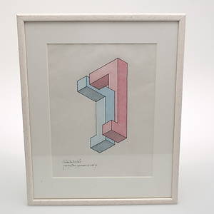Oscar Reutersvärd, "Perspective japonaise no 294" Signerad. Tusch och akvarell 23 x 17 cm. Ej examinerad ur ram. Läs mer...