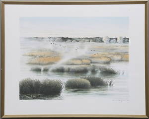 Gunnar Gebbe Björkman (f. 1945), Sverige. Signerad, numrerad 231/365, daterad -87, Midvinter vid fågelsjön, Färglitografi, bildmått: 34x45 cm, yttermått inklusive ram: 48x61 cm. Gunnar Gebbe Läs mer...