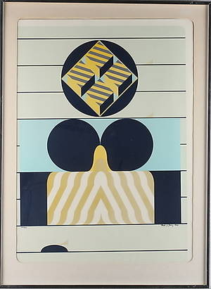 BECK & JUNG (Holger Bäckström 1939-1997 - Bo Ljungberg 1939-2000): Komposition, signerad och daterad Beck & Ljung 1974, 2/20, screenprint, ca 99x99 cm. 901731. Läs mer...