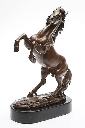 Bronze mit brauner Patina, auf schwarzem Marmorsockel, auf der Plinte bezeichnet,n