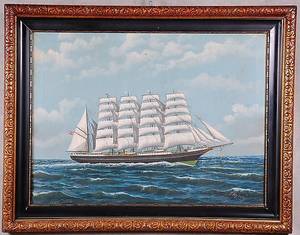Avslutade auktioner liknande F NYBORG. olja på duk, marinmålning av fullriggaren " Köbenhavn " , 1900-talets början, signerad.