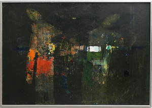 Konstnär född: 1935 Abstrakt komposition Monogramsignerad: OG Mått på duk: 90 x 117 cm Konditionsrapport: Mindre färgsläpp och märken, mindre åldersbaserat slitage, inga övriga anmärkningar. Läs mer...
