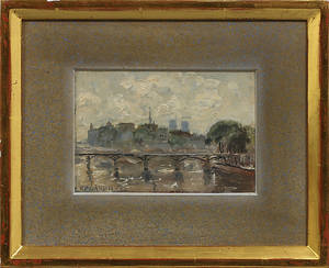 HANS EKEGÅRDH (1881-1962): Quai de la Rapée vid Seine, Paris, med i fonden Notre-Dame, signerad Ekegårdh, olja på pannå av papp, 12,5x 21,5 cm. 808552. Läs mer...