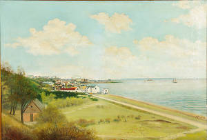 Oljemålning, Oidentifierad konstnär. Utsikt mot ...