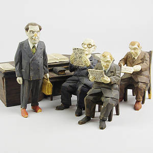 Avslutade auktioner liknande SKULPTURGRUPP, 5 delar, snidat trä, signerad E.G.