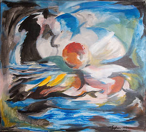 Tapan Patra, Abendsonnenspiel, Öl auf Leinwand, sign. und dat.1998.