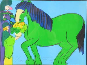 WALASSE TING (Kina, 1929-2010): Grön häst, signerad och daterad -81, 100/200, färglitografi, bladmått ca 45 x 59 cm. Ej examinerad ur ram. Läs mer...
