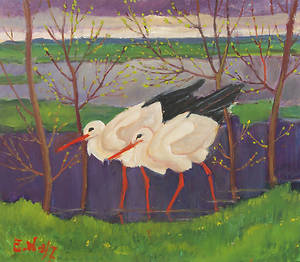 Avslutade auktioner liknande ERNST NORLIND. Storkar, olja på pannå, monogramsignerad -47.