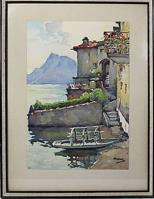 NICHOLAS MARKOVITCH. "Gandria; lake of Lugano", litografi, signerad Marc.