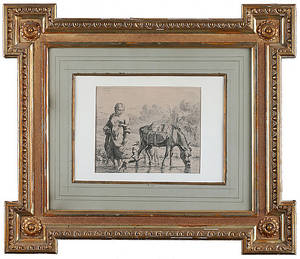 Avslutade auktioner liknande OIDENTIFIERAD KONSTNÄR. Kvinna med åsna vid vattendrag, gravyr, signerad. 1800-tal.