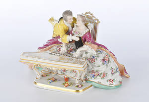 POSLINFIGURIN. Galant Herre kramar dam vid piano.