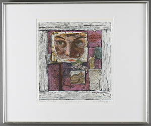 Avslutade auktioner liknande NILS ZETTERBERG. "Violett dörr", färglitografi, märkt "epreuve d'artiste", signerad och daterad 1974.
