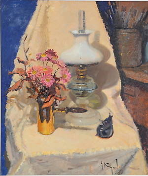 Oljemålning, Oidentifierad konstnär. Liljekonval...