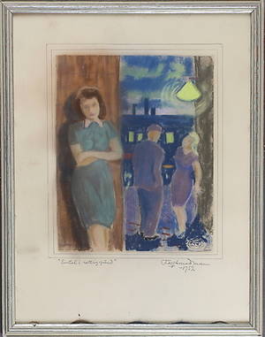 Avslutade auktioner liknande OIDENTIFIERAD KONSTNÄR. "Samtal i nattlig gränd", pastell, signerad och daterad 1952.