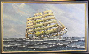 Oidentifierad Konstnär, Fullriggare. Signerad. Olja på duk, Bildmått: 60x120 cm, yttermått inklusive ram: 90x150 cm. Läs mer...