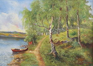 Avslutade auktioner liknande GÖSTA YDSTRÖM. Eka i björklandskap. Olja på duk, signerad och daterad 1916.