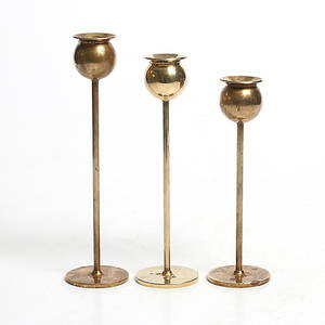 3 st, Pierre Forsell (1925-2004), Sverige. Tulpan, Skultuna. Mässing. Höjd: 19-22,5 cm. Pierre Forsell, svensk formgivare född 1925, död 2004. Läs mer...