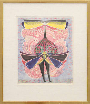 Max Walter Svanberg, "Imaginär kvinna". Signerad och daterad -58. Gouache, I. 46 x 28 cm. Ej examinerad ur ram. Läs mer...