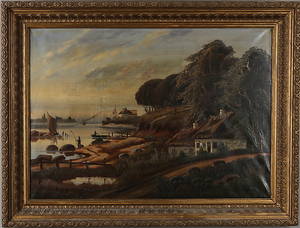 Oidentifierad konstnär. 1800-tal, landskap med hamnstad. Olja på pannå, ej signerad, 18x23 cm, yttermått inklusive ram: 29x35 cm. Läs mer...