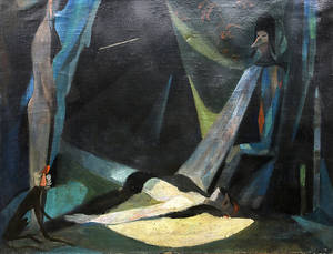 KUBISTISCHER MALER (DEUTSCH, ANFANG 20. JH.). "Szene mit Harlekin und Äffchen".
