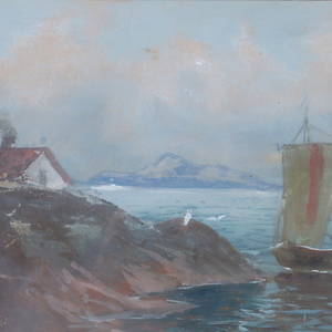 Avslutade auktioner liknande SEVERIN NILSON. Blandteknik på kartong, kustmotiv, signerad.