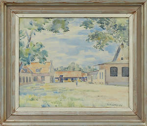 Avslutade auktioner liknande EDVIN OLLERS. Gårdsvy. Akvarell, signerad och daterad 1941.