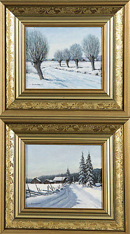 GÖTE SVENSSON. Vinterlandskap, 2 stycken oljemålningar på duk, signerad G. Svensson.