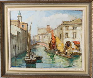 Knut Norman (1896-1977), Sverige. Motiv från Venedig. Signerad. Olja på pannå, 33x40 cm, yttermått inklusive ram: 50x58 cm. Knut Norman, född 1896, död 1977, svensk Läs mer...
