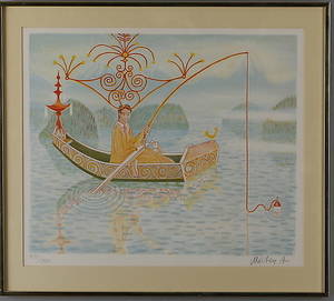 Mårten Andersson (1934-2017), Sverige. Man i eka, oramat löst blad. Signerad, numrerad 1374/1400. Färglitografi. Bladets mått: 45x54 cm. Oramad. Mårten Andersson, svensk bildkonstnär född i Läs mer...