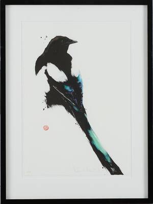 KARL MÅRTENS (född 1956): Skata, signerad Karl Mårtens, EA, färglitografi, bladstorlek 29,5x43 cm. 352084.